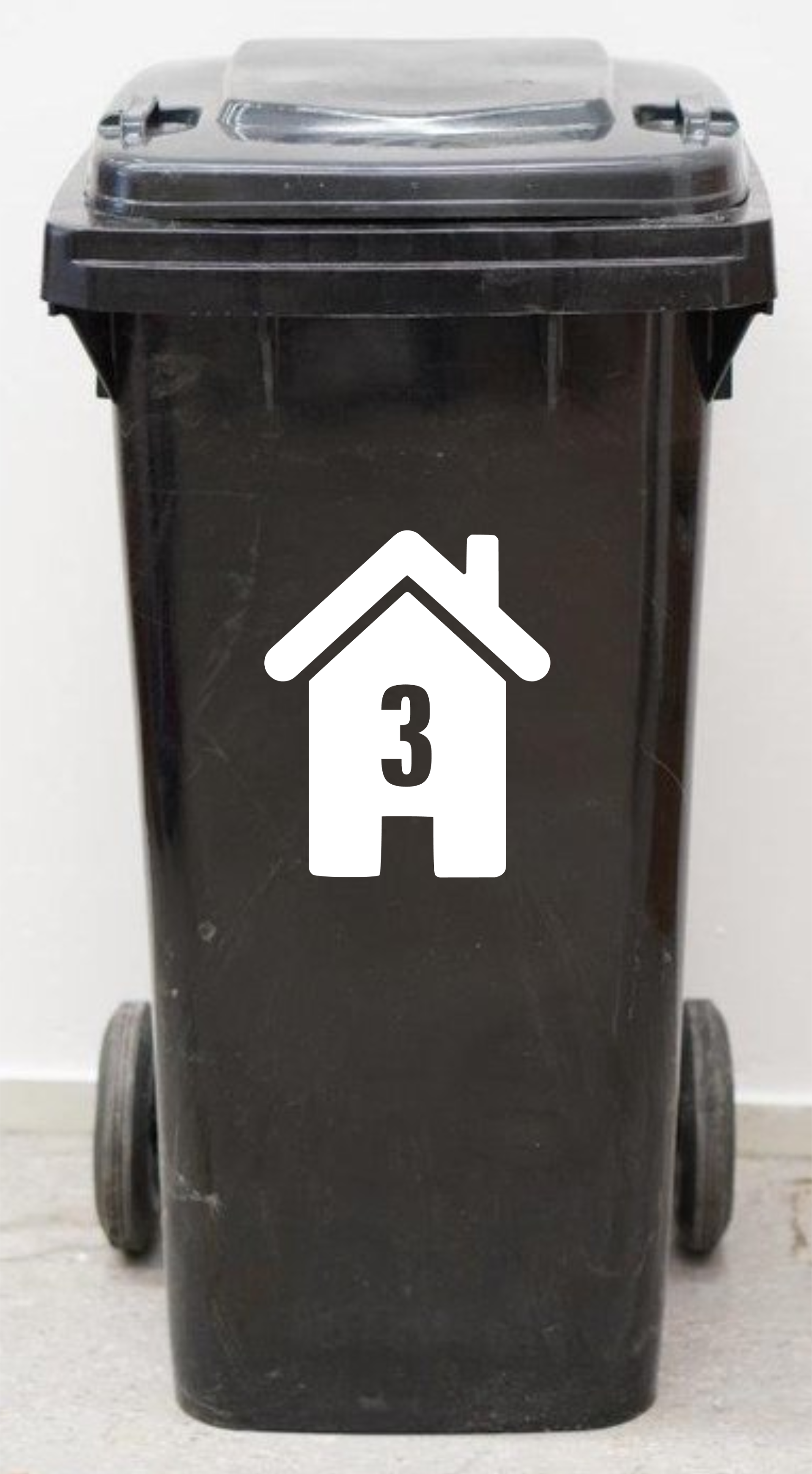 Klikostickers met afbeelding en huisnummer voor op deksel.